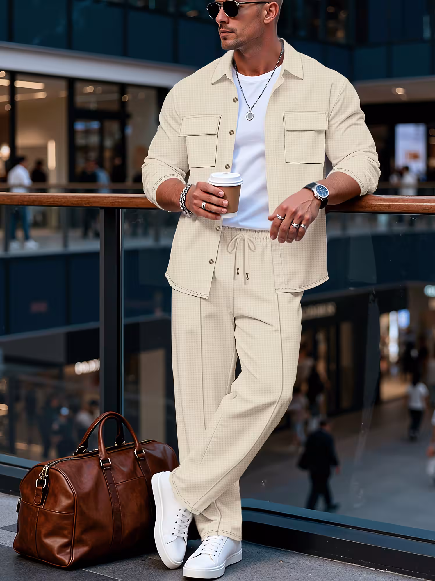 Men Two-Piece Shirt and Pants Clothing Captivating Set Spring and Autumn. Captivating Men’s Two‑Piece Clothing Set Featuring a Coordinated Shirt and Pants, designed with a Contemporary Fit and Seasonal Comfort Ideal for Spring and Autumn Fashion‑Forward Looks