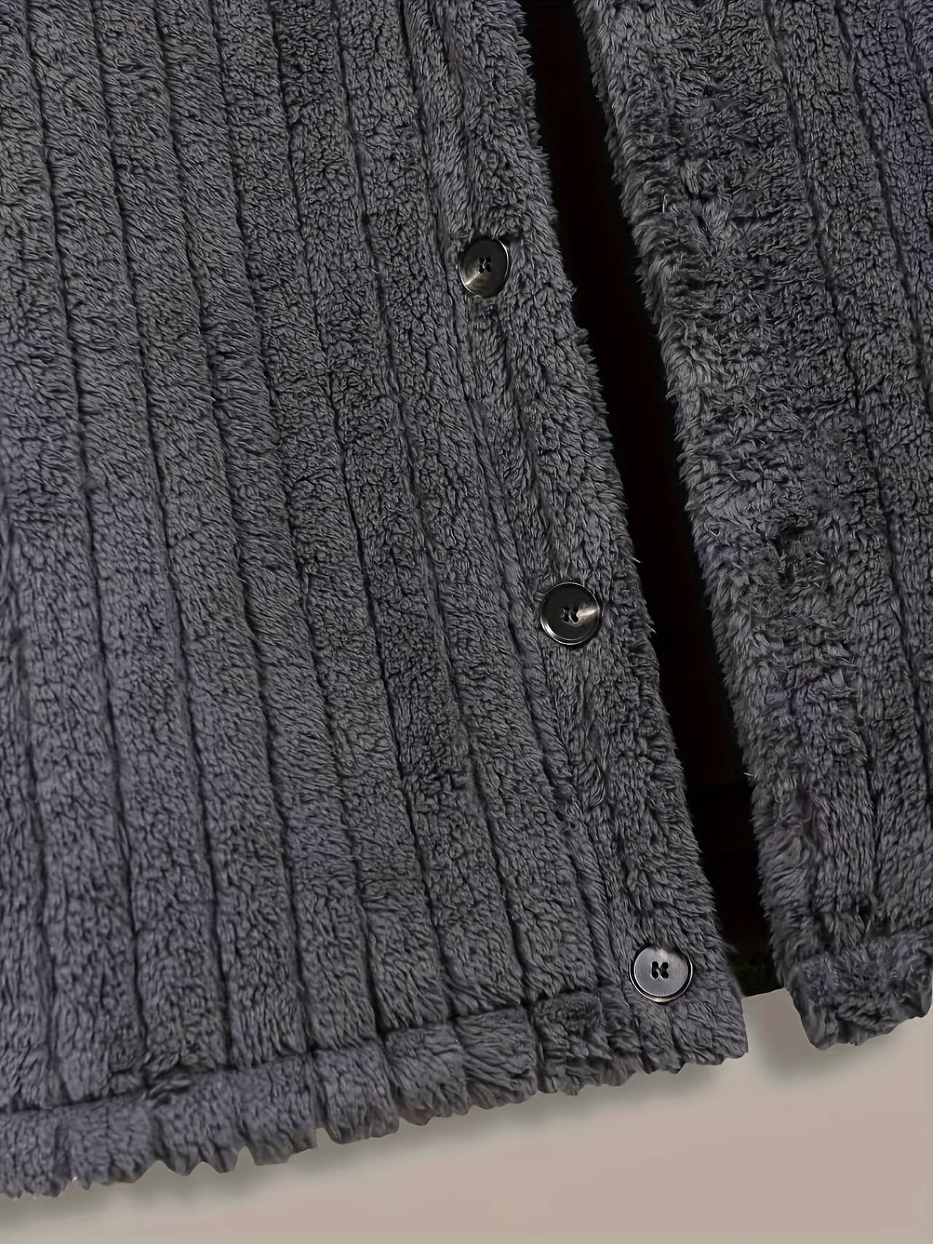 Men Winter Plush Jacket with Luxurious Collar & Soft Grey Coat, Single-Breasted Button Closure, Machine Washable, Collar Jacket for Cold Weather, Casual & Formal Wear (No)