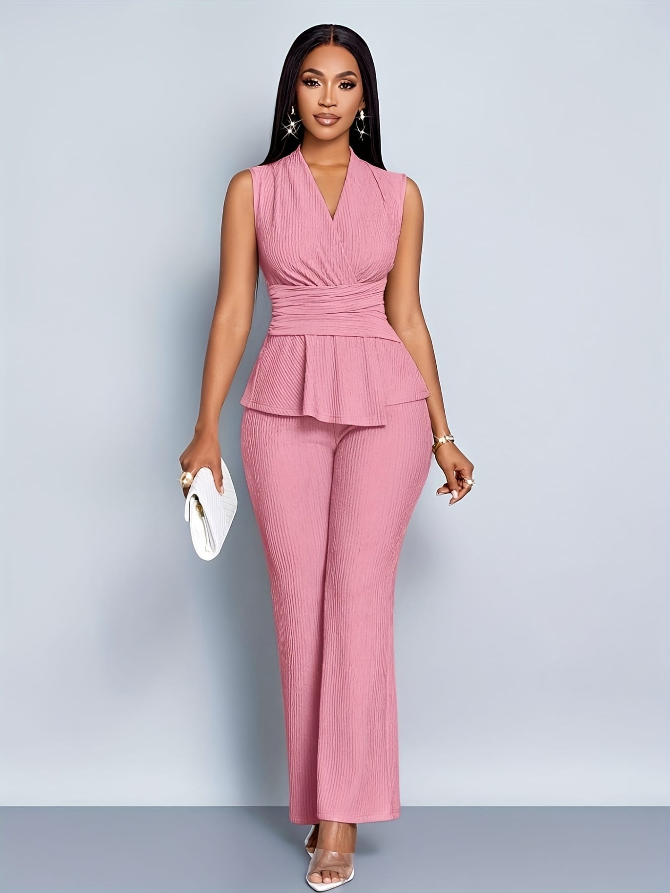 2/Piece Set – Wide-Leg Pants Two-Piece Set Elegant Women Alluring V-Neck